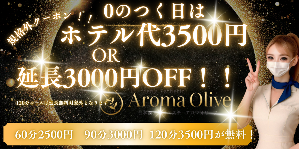 ホテル代…60分→2,500円off、90分→3,000円off、120分→3,500円off