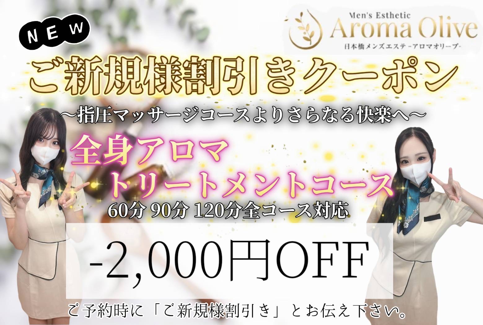 1日5名様ご新規限定で2,000円割引で全コース
